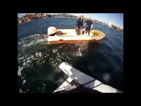 Looking at the wake carefully you can see the occasional disturbance due to ventilation of the surface piercing foil. This is an issue inherent in highly loaded surface piercing foils and we are experimenting with ways to mitigate it.
